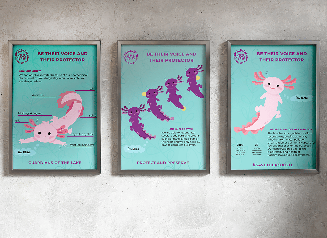Xochimilco is an awareness campaign focusing on the conservation of the Mexican axolotl. The axolotl is an endemic species of Mexico in danger of extinction. Its conservation is vital to the biodiversity and health of the aquatic ecosystems of Xochimilco’s Lake.